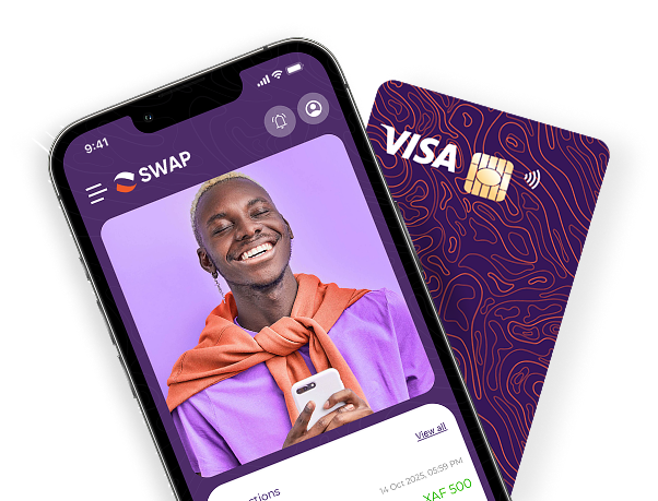 Ta carte Visa SWAP (virtuelle ou physique) t’accompagne partout, en ligne comme en boutique, au Gabon et à l’international
